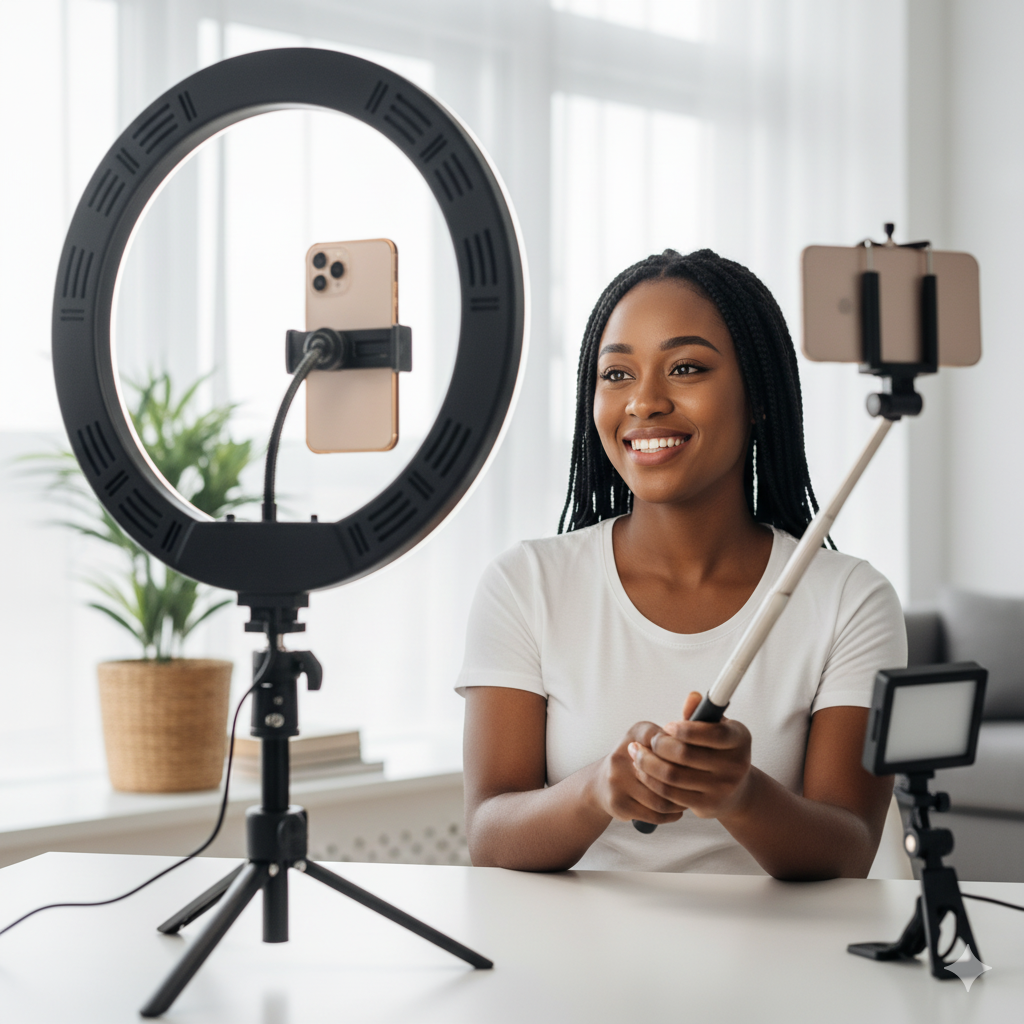 Content Creation Lights, LED lights, selfie sticks etc